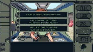 Utilizzando le tradizionali meccaniche di avventura punta e clicca, durante il tuo tempo a bordo del Gun-Dog, puoi navigare in varie posizioni sulla nave, esaminare i dettagli degli sfondi riccamente realizzati o parlare con i diversi membri dell'equipaggio a bordo. Dovrai ascoltare attentamente le parole dei personaggi per rivelare indizi importanti o intenzioni ambigue e tenere gli occhi aperti per oggetti chiave ed elementi interattivi negli sfondi che puoi usare per far avanzare la storia.