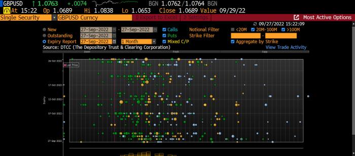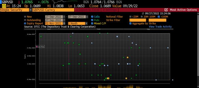Ciò rende difficile indovinare esattamente quando potrebbe verificarsi la parità. Ma i mercati delle opzioni, come è loro abitudine, riflettono un paio di punti di vista. I commercianti hanno finalmente iniziato a fare ragionevoli scommesse a breve termine sulla parità ieri: una visione di un mese delle opzioni via cavo mostra gli strike di $ 1 e $ 0,98, rispettivamente il 10 e il 26 ottobre. Queste non sono scommesse enormi (l’opzione del 26 è un’idea di soli £ 100 milioni), ma la loro novità mostra un cambiamento negli atteggiamenti su quando potrebbe verificarsi la parità.
