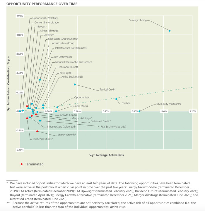 In oltre mezzo decennio, questa strategia di (scusate il gergo) acquisto basso e vendita alto sembra aver prodotto circa due terzi del rendimento in eccesso del Fondo rispetto al suo Portafoglio di riferimento/benchmark. E dall'inizio della strategia nel 2009 ha aggiunto NZ$4,6 miliardi al NAV in termini di performance.