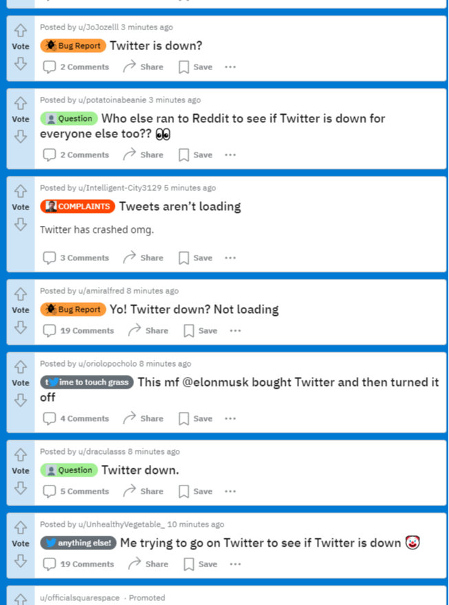 … e dai servizi di microblogging di riserva come Reddit: